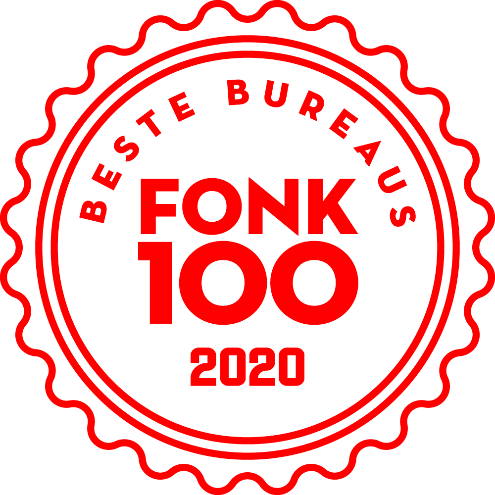 Jaarlijks wordt de FONK100 samengesteld door marketingmagazine FONK. De lijst is gebaseerd op klanttevredenheidsonderzoeken die op grote schaal worden uitgevoerd onder de verschillende bureaus in Nederland. Kwaliteit staat hierbij centraal. De lijst, oftewel de FONK100 Beste bureaus 2020, wordt aan de hand van 26 jaar onderzoekservaring op het gebied van bureaureputaties en klanttevredenheid door de redactie samengesteld en aangevuld op basis van de volgende parameters: – Resultaat klanttevredenheidsonderzoek (7,0 of hoger), zichtbare durf te vernieuwen, klantenlijst die ertoe doet, zichtbaar gepassioneerd ondernemerschap en positieve zichtbaarheid in de media.